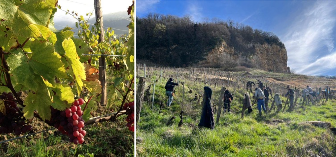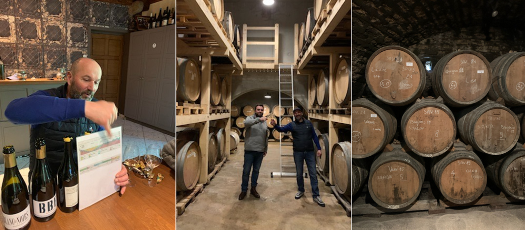 Clockwise: A geology lesson on Tissot’s terroirs; the Jura-way of above ground cellaring; 6 vintages worth of Vin Jaune!; 4 kinds of pink vines from which the Rosé Massale is pressed; Château-Chalon is a Grand Cru in all but name!